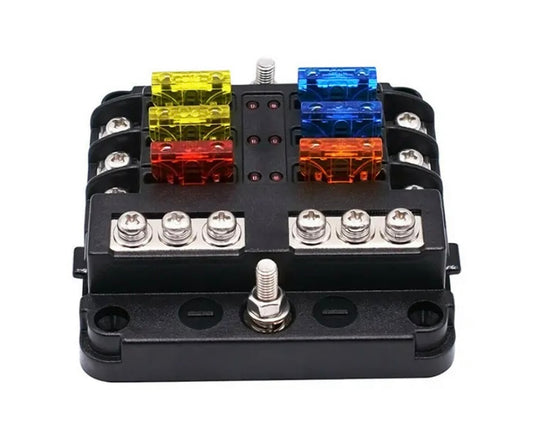 Portafusibles de 6 vías con tapa | 12/24 V para camper y caravana