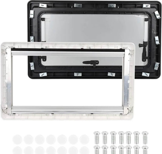 Ventana abatible 500×350 mm acrílica para camper y caravana | Con oscurecedor y mosquitera
