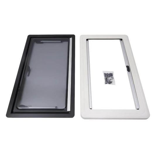 Ventana abatible 900×350 mm acrílica para camper y caravana | Con oscurecedor y mosquitera